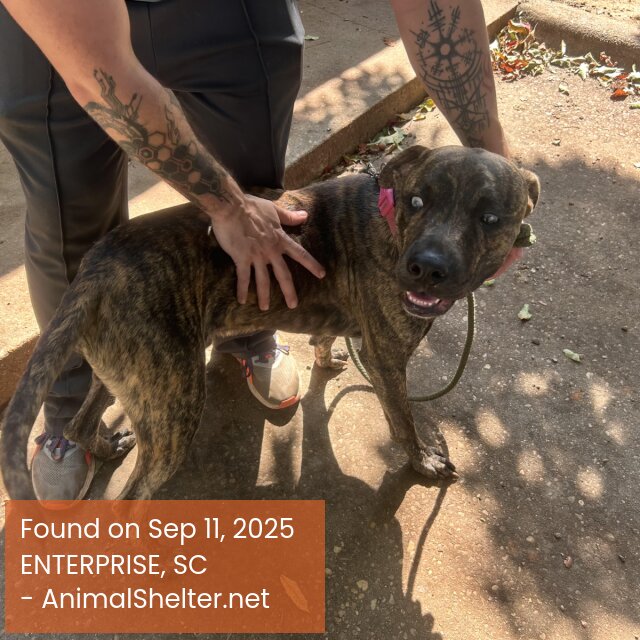 Medium size, boxer mix, blue right eye, brown left eye, about 50 lbs, and about 2 years of age found near Enterprise AL, near Cody Dr, calm, friendly Right now at Enterprise Animal Control - He was sitting at neighbors drive way, and the neighbor called Animal control and was picked up 9/11/25DID YOU FIND OR SEE THIS PET?