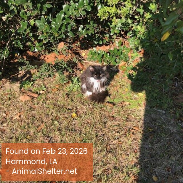 Black and white long hair cat. Friendly. Hungry. I will feed and water. Cannot shelter.DID YOU FIND OR SEE THIS PET?