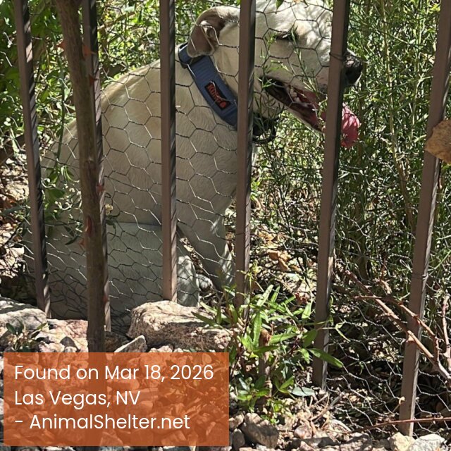 White female, pit bull mix. Unchipped but with blue collar. Uninjured but very scared. Please contact Animal Foundation if this is your pet!DID YOU FIND OR SEE THIS PET?