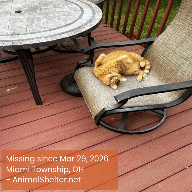 Beau is a 11 pound orange tabby male cat Heβs shy but probably hungry. I am offering a reward to anyone who finds him!DID YOU FIND OR SEE THIS PET?