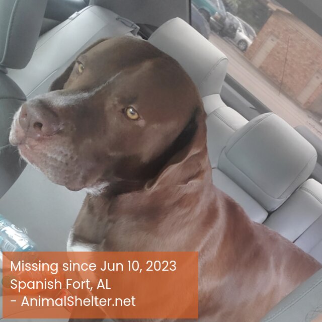 Chcolate brown with some reddish tint. White on nose, chest, and toes. Very friendly and chill. Not a cuddler.DID YOU FIND OR SEE THIS PET?