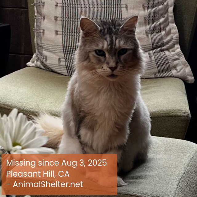 Our car went out from our back yard leading the Golf Course in Pleasant Hill, since then have not been able to find her. She is a Maine coon.DID YOU FIND OR SEE THIS PET?