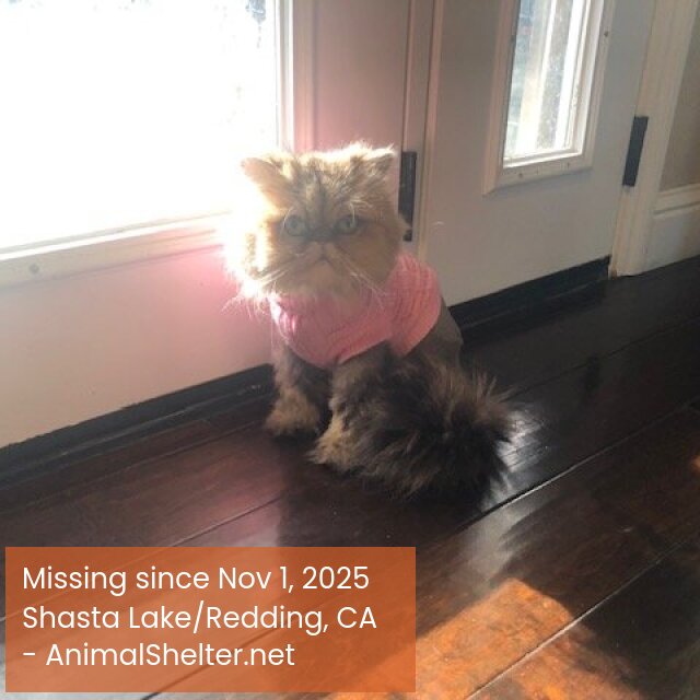Small, very friendly- Female, spayed, Golden Persian. Currently very fluffy coat due to season, could be matted now, she usually does not wander far, but could have gone to someone for help-she is very missed and loves to snuggle.DID YOU FIND OR SEE THIS PET?