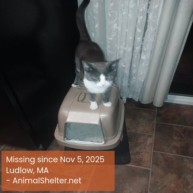Shy Boy has been missing since 11/5. He is a very sweet boy and might respond to his name. We miss him and need him back home with his siblings where he belongs. He is chipped and neuterd.DID YOU FIND OR SEE THIS PET?