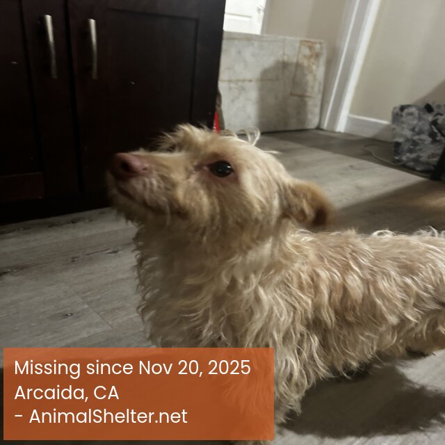 Weβre visiting at Exstened stay America in Arcaida my son was walking him .730 pm He got off leash . Heβs terrier mix pink nose . 12 lb . Please help me heβs my son life and Esa Dog . He has golden brown curly hair .We look all night ask most hotels in the area . If found please contact meDID YOU FIND OR SEE THIS PET?