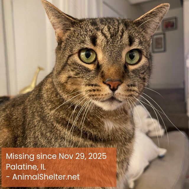 Chubby 7β8 yr tabby cat, grey shades with light brown on his chest and belly. $100 rewardDID YOU FIND OR SEE THIS PET?