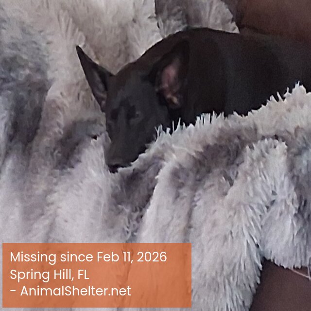 25 lb, solid black chiweenie. Named Daisy. Is not people friendly. She is very attached to her Mommy. She is micro chipped.DID YOU FIND OR SEE THIS PET?
