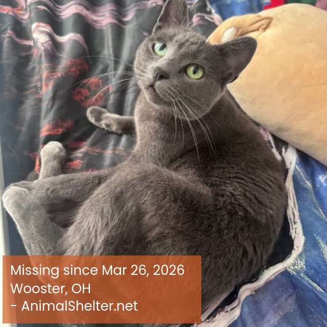 She got out the other day with her brother; we found her brother nearby 1120 Kada Ln Wooster. She's dainty, not big and nicest cat. Likes to hide well. Under stairs, porches, garages, dark corners.DID YOU FIND OR SEE THIS PET?